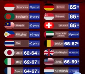Comparative Overview of Retirement Ages Thailand’s official retirement age of 60 years is lower than that of many major economies and is often closer to the minimum retirement ages in Asia.